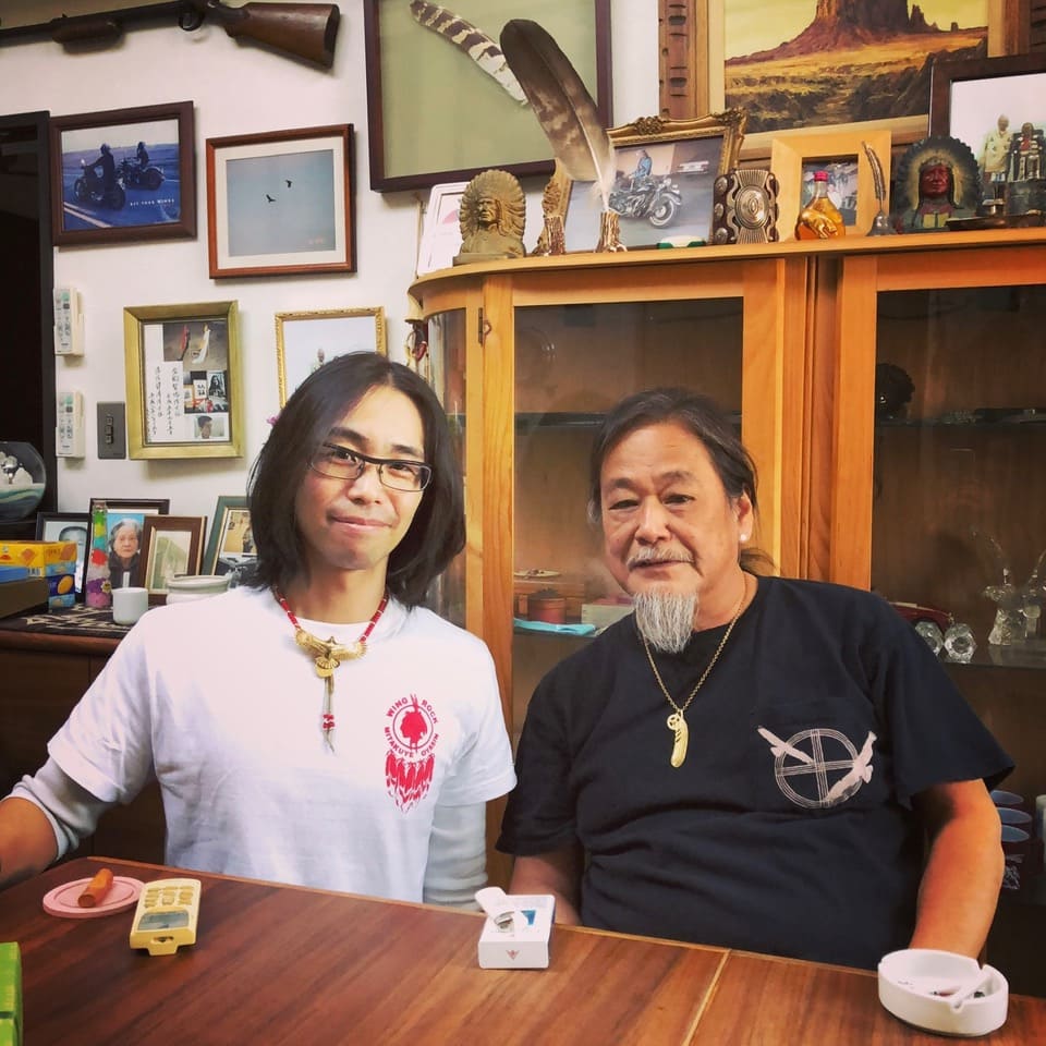 シルバーアクセのレジェンドWINGROCK リキ氏との交流も深く、25年以上にわたり、ずっとWING ROCK を愛し続けるファンの1人で、Tシャツのデザインも手がけた。
