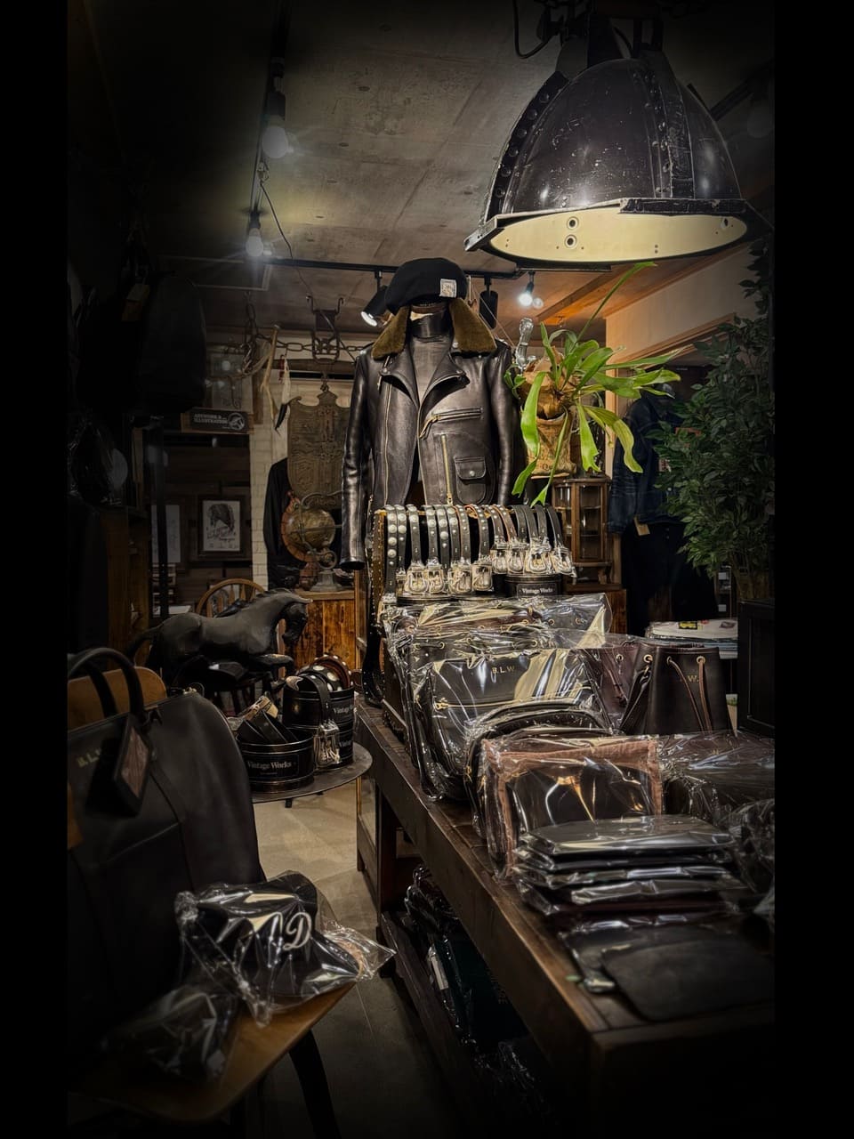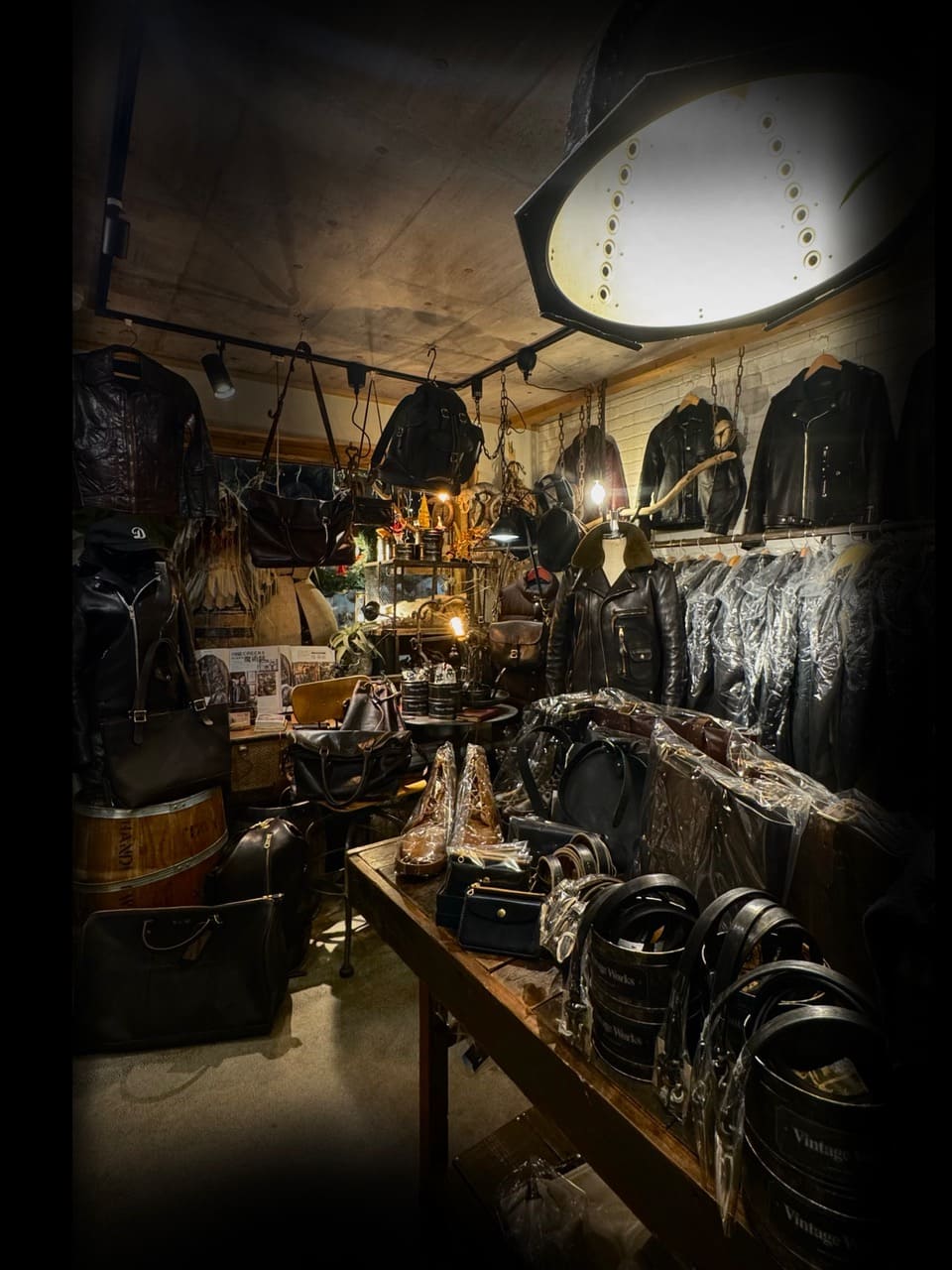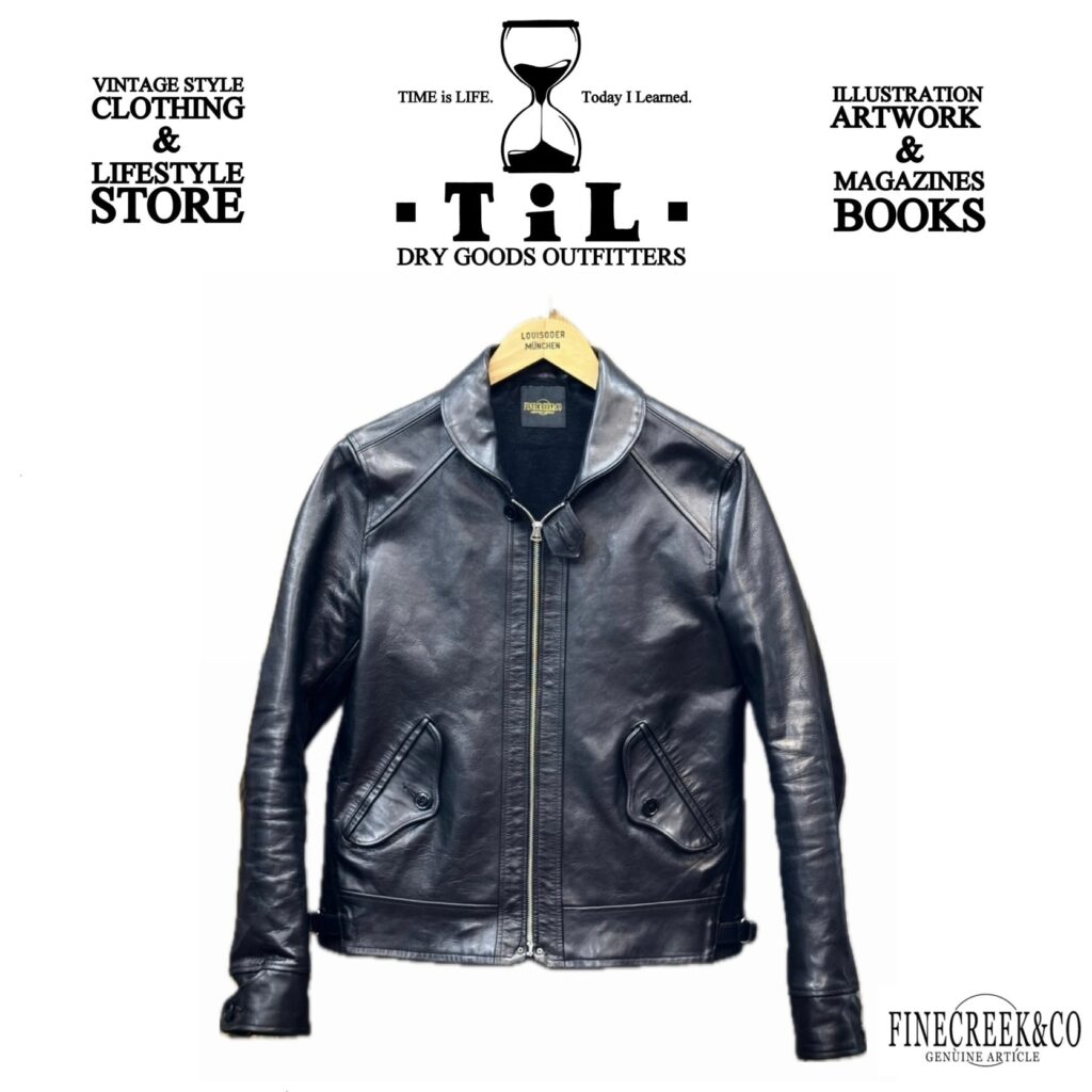 店内は、ファインクリークの革ジャンをはじめとする